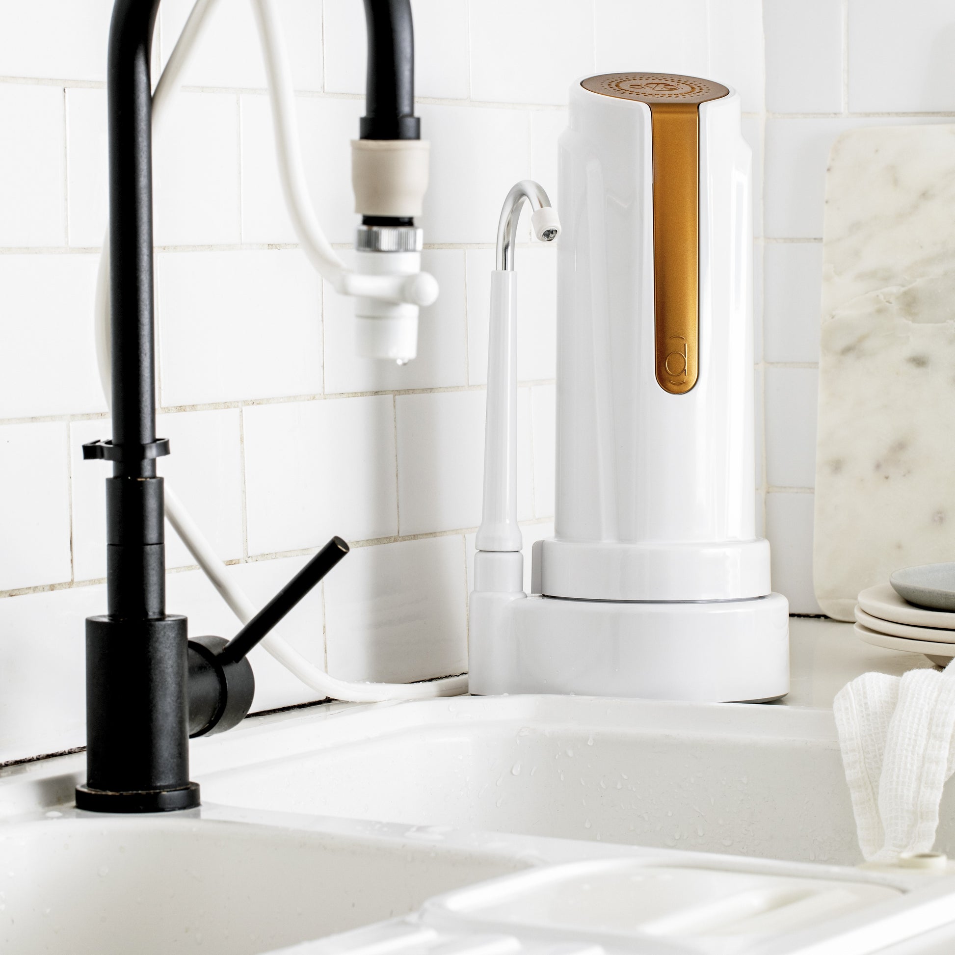 - Diseñado para brindar agua purificada en cuestión de segundos, este purificador sobre mesada se integra perfectamente en la vida cotidiana. Olvídate de preocupaciones sobre la calidad del agua que consume y disfruta de la comodidad de un suministro seguro para toda la familia.